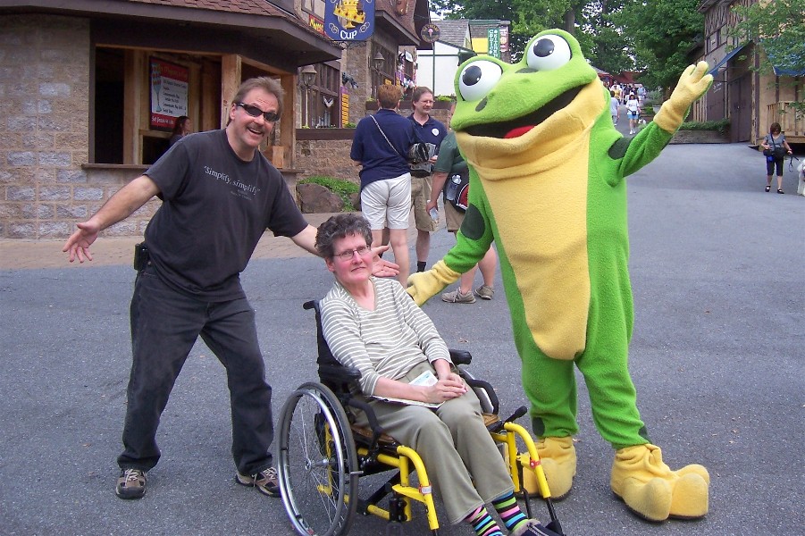 Depending on your mobility device some parts of the Pennsylvania Renaissance Faire ground may or may not be the easiest to navigate. Manually pushed, it is all ‘no problemo’ for Patti and good exercise for me.